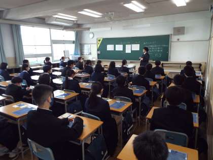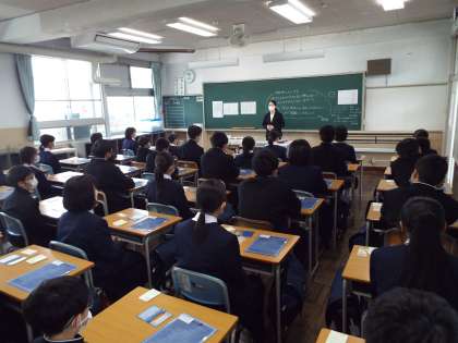 学級担任から今日の動きの説明をして、配付物の確認をしました。