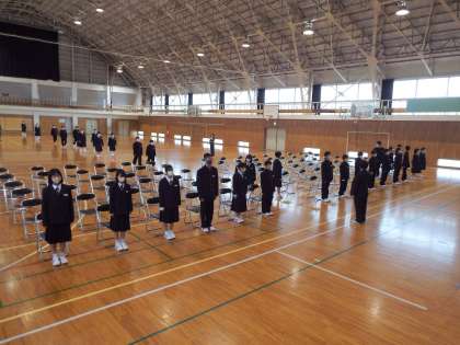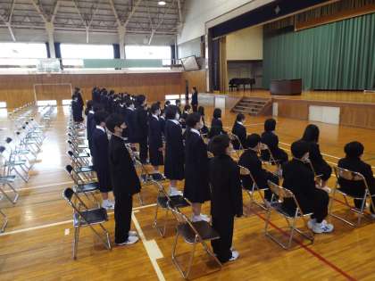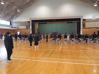 後ろの入り口から入り、2年生と3年生の間の花道を通って入場します。