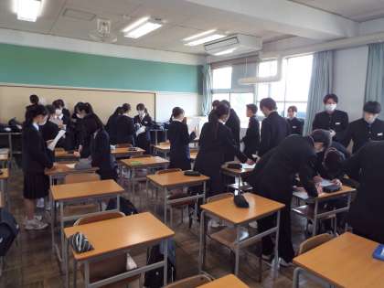 自己紹介カードを書いて学級の全員と交流するというクラスもあれば、まずは自分の今年度の目当てをと言うクラスもありました。