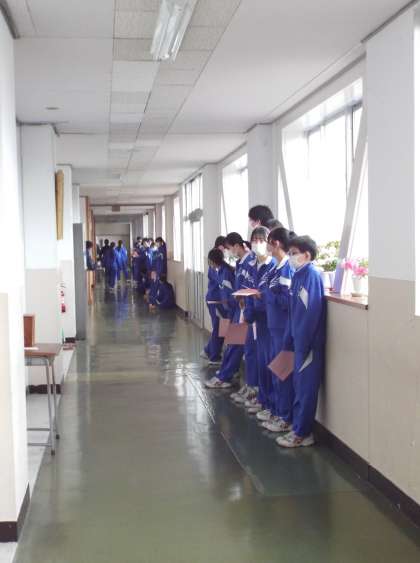 視力、聴力、身長、体重などをそれぞれの部屋を回って測定していきます。