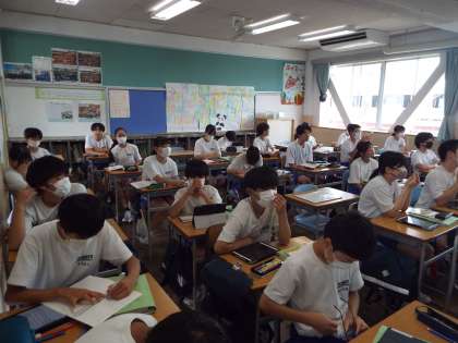 動詞の活用について、クラス皆で声を出して読んでいました。