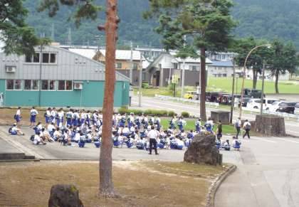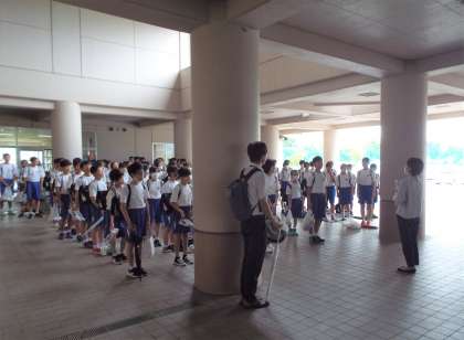 雨が降らなくて良かったですが、蒸し暑い中で国際情報高校まで15分の道のりを歩いて移動しました。