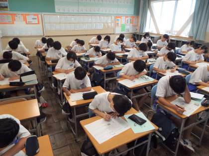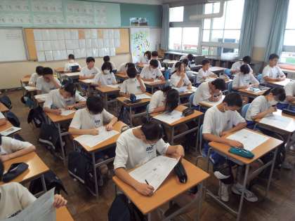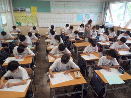 など1学期を振り返って一生懸命に書き込んでいます。