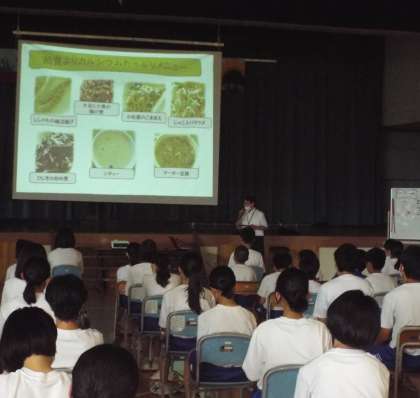 今日は大和給食センターから講師に来ていただき、自分の体を作る栄養や食事のあるべき姿について話をしていただきました。