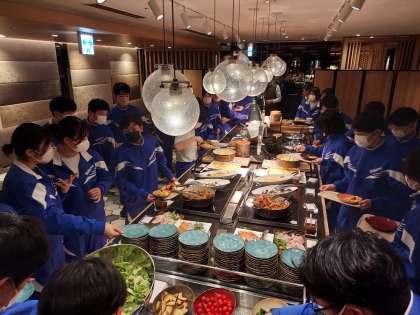 1日がんばりました。さあ腹一杯食べるぞ。おかわりするぞ。