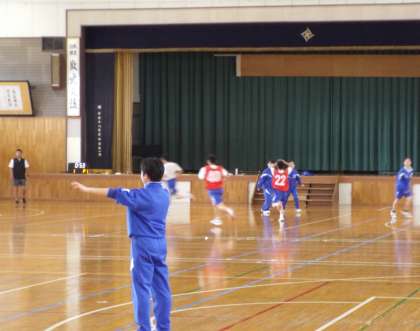 ビブスを付けた鬼訳の生徒がたくましく見えます。みんながんばって!