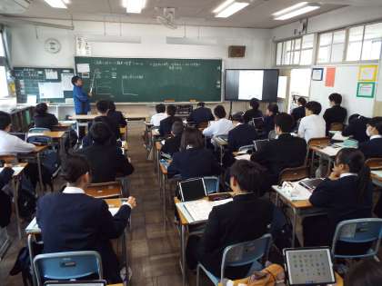 多くの授業が電子黒板と普通の黒板の併用になってきています。