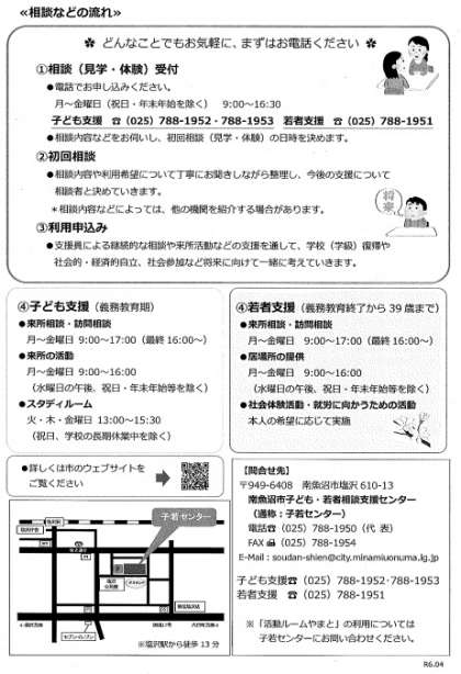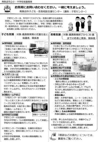 南魚沼市子ども・若者相談支援センターからの案内を昨日配付しました。