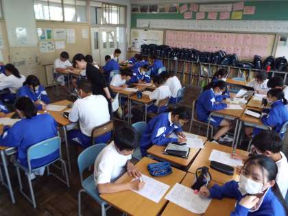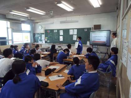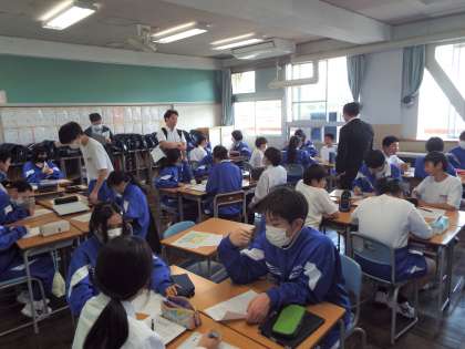 5/22 小中連絡会公開授業、1年生。班の力で脱出