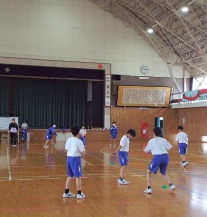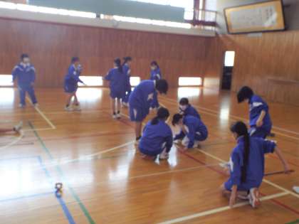 体育館ではボール投げと立ち幅場跳び
