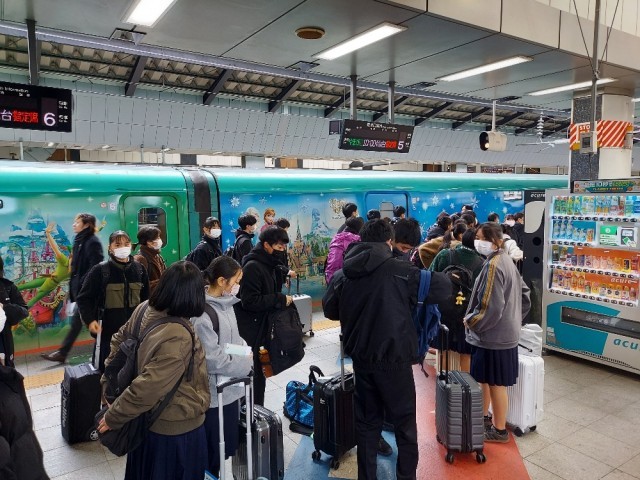 大宮駅手前でディズニープリントの東北新幹線と並走して大興奮、東京駅で無事乗り換えました。