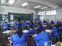 今年度の授業を締めくくって教科の意味や将来に向けての願いを話しているクラス配付...