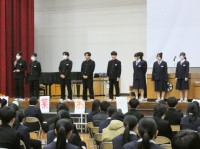 同窓会入会式を行いました。この式を終えるといよいよ卒業なんだなと毎年思います。卒業後も互いを支え合う仲間でいて、母校の発展に貢献してください。