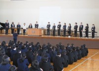 新任式では16名の新しい職員を迎えました。今までの職員と合わせて総勢43名の職員で力を合わせて生徒をサポートしていきます。保護者・地域の皆様の変わらぬご支援をよろしくお願いします。始業式では代表の3名...