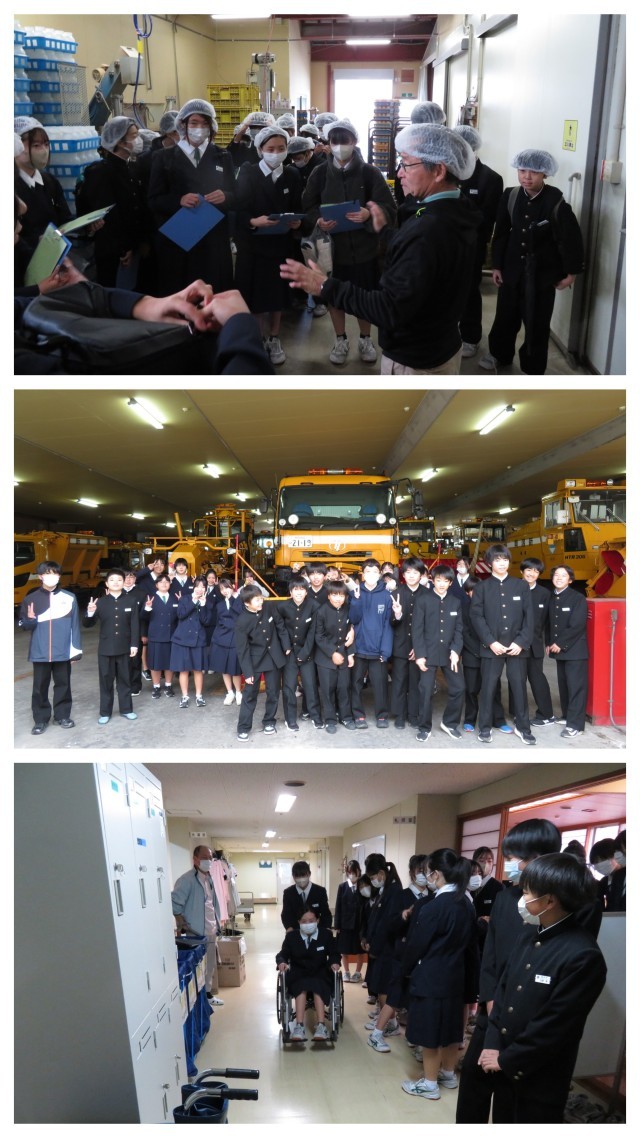 1年生が職場訪問に行ってきました。地元南魚沼市の産業や事業所への理解を深め、地域の特色への関心を深め、自己の進路を考える機会にすることをねらいとしています。