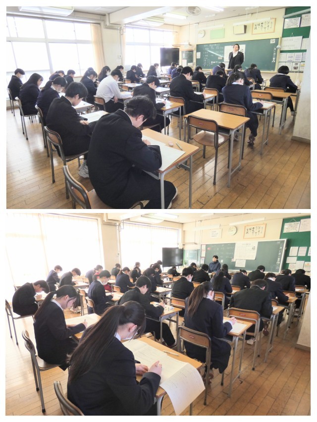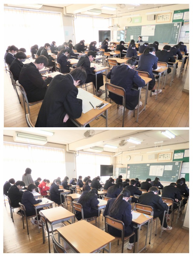 2年生は今年度最後の第4回定期テストを行っています。年度を締めくくる大切なテストです。明後日もあるので、明日は休日ですが頑張って勉強してくださいね。