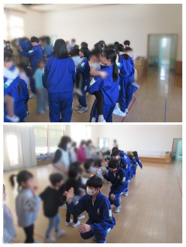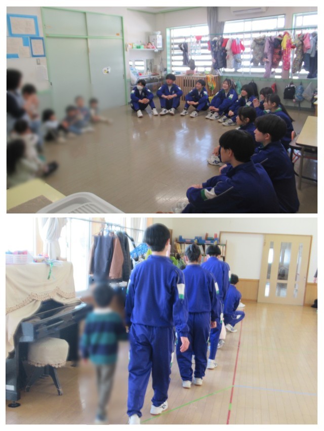 今日は1組が保育園を訪問しました。楽しく遊んで、帰り際には帰らないでと園児が中学生に抱きつく姿が多く見られました。