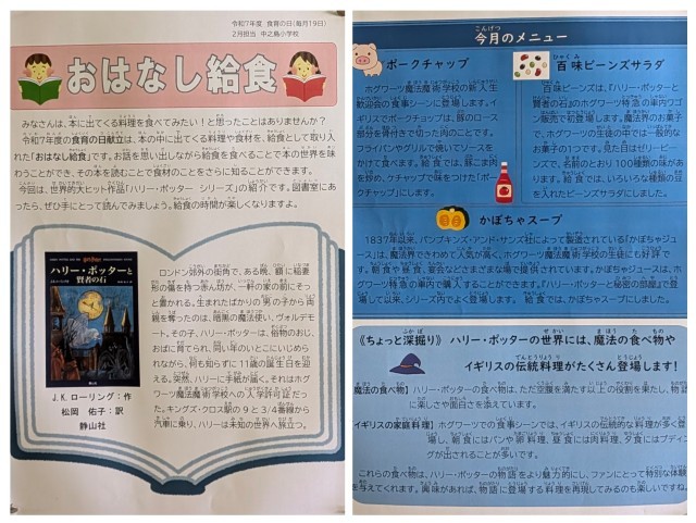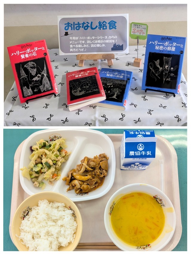 今月のおはなし給食はハリーポッターに関するメニューでした。美味しくいただきました。