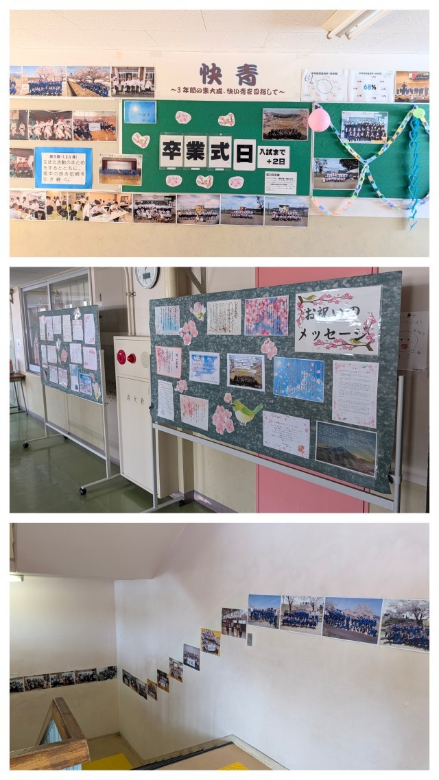 明日はいよいよ卒業式です。準備ができた校舎を歩いているとちょっと寂しい気持になります。