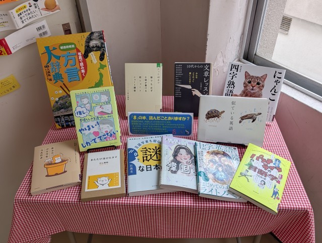 図書館の本は、内容によって分類されています。 背表紙に貼ってあるラベルに数字が書いてあるのがそれですね。「8」の本は、ことば(言語)の本です。普段なかなか手に取らない 分野ですが、おもしろい本が結構あります。