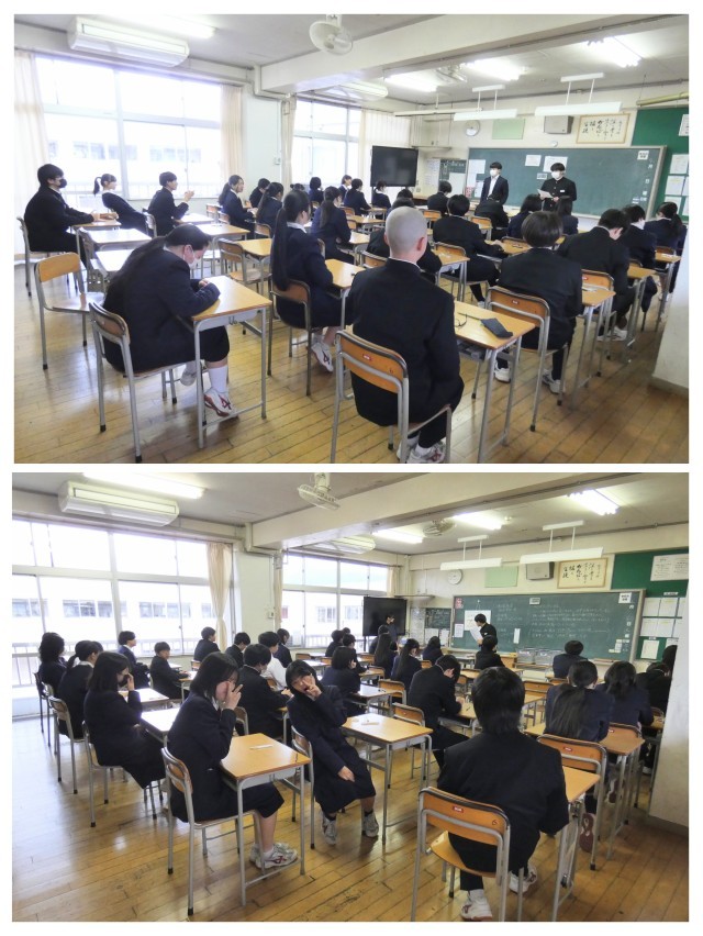 基礎力upプロジェクトが終わったら朝学活です。当番がしっかりと進めていました。
