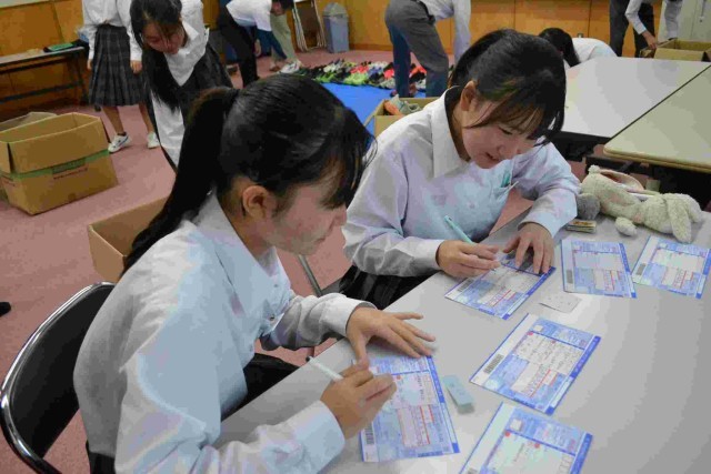 今日は、生徒会総務の生徒と奉仕委員会の代表生徒が集まったシューズを最終確認して段ボールに梱包する作業を行いました。