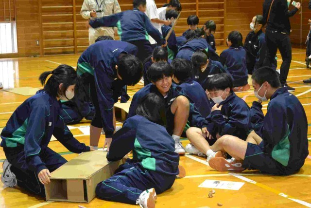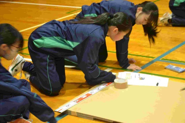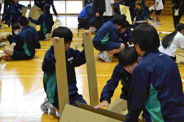 班別実習があり、段ボールの橋をみんなで協力して楽しそうに制作していました。