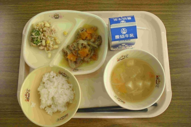 今日の給食の献立は、南魚沼市産の食材を使った「きらっと☆新潟米地場産給食」でした。