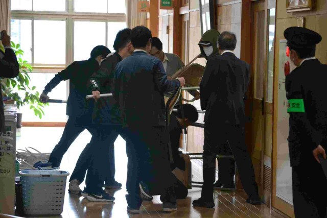 南魚沼警察生活安全課からご協力をいただき、不審者が校内に侵入してきたという設定で訓練を行いました。
