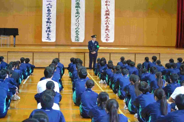 課長さんから、全校生徒に向けて、普段から不審者への対応は備えておくべきだとご指導がありました。