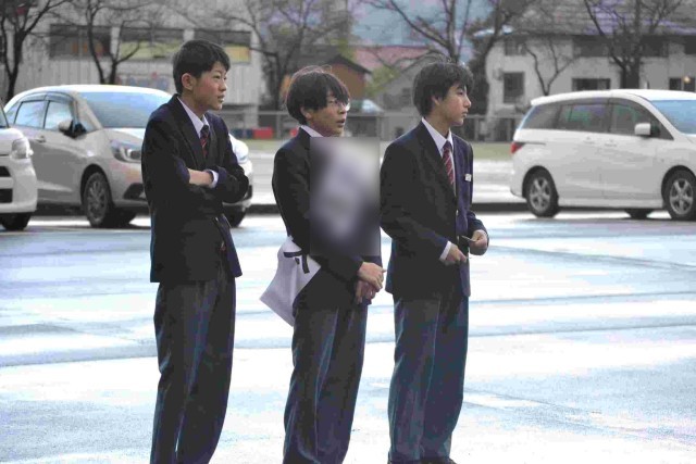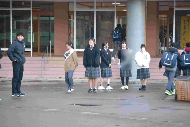 今朝から立候補者と運動員が生徒玄関前に立ち、登校してくる生徒たちへ呼びかけています。