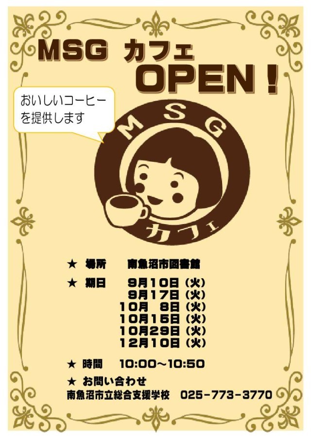 2学期MSGカフェのお知らせ