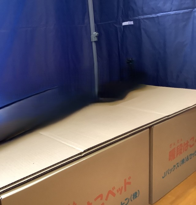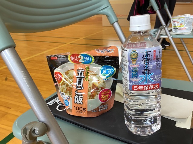 体育館に避難したことを想定しながら、市役所防災庶務班の方にお話を伺ったり、実際に備蓄食料づくりや段ボールベット、防災テントの組み立てを体験したりしました。