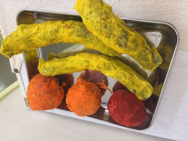 にでてくる果物も、図工の時間に手作りして、フェスタに登場