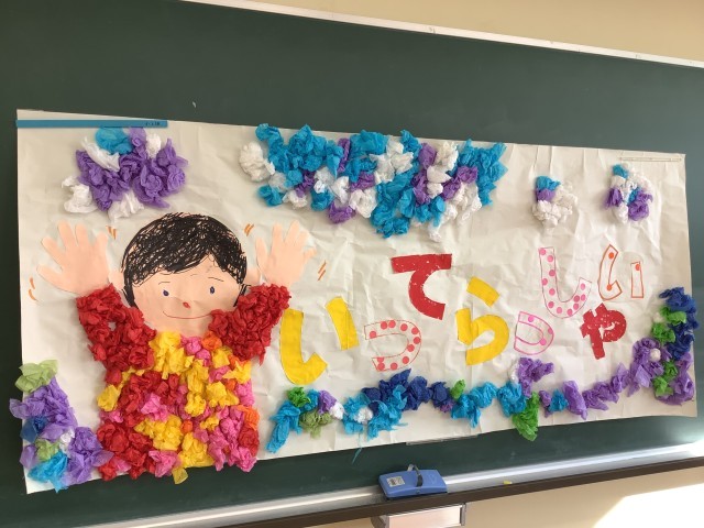 教室には5年生が作ったかわいらしいメッセージが飾られていました。