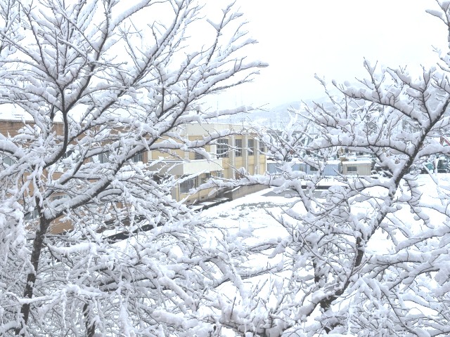 昨夜からの降雪で、外は一面真っ白な銀世界になりました。