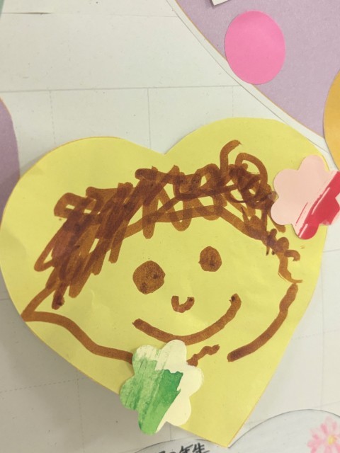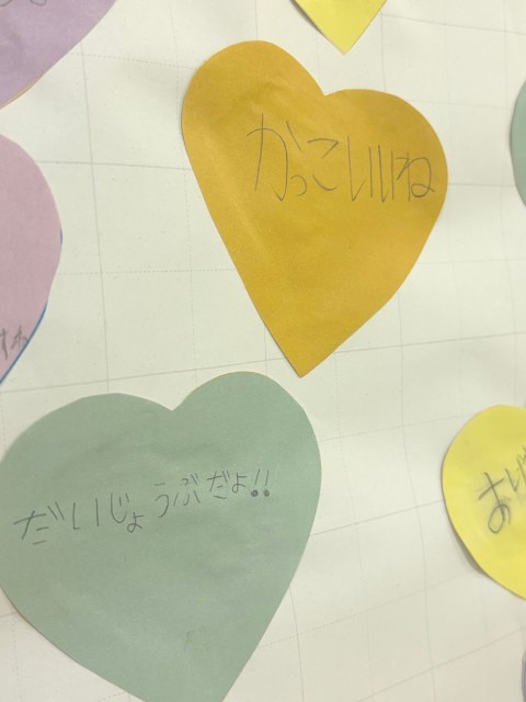 ハート形のカードには自分たちの言葉やイラストが並び、