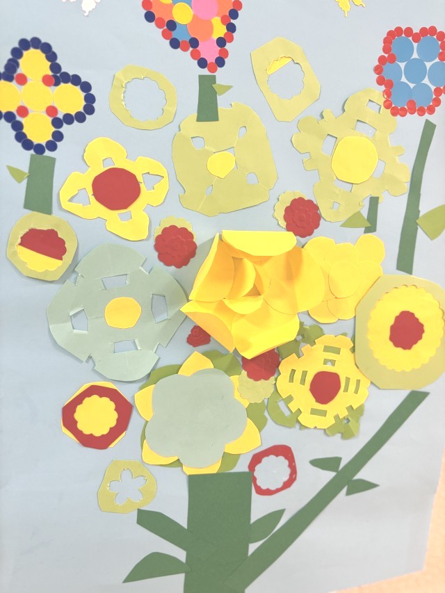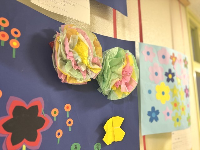 高等部の教室前には、美術の時間に作ったお花が掲示されていました。