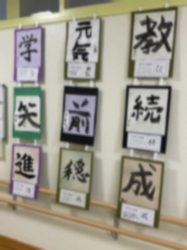 高等部の教室前には、今年の目標を漢字一文字で表した作品が掲示してありました。