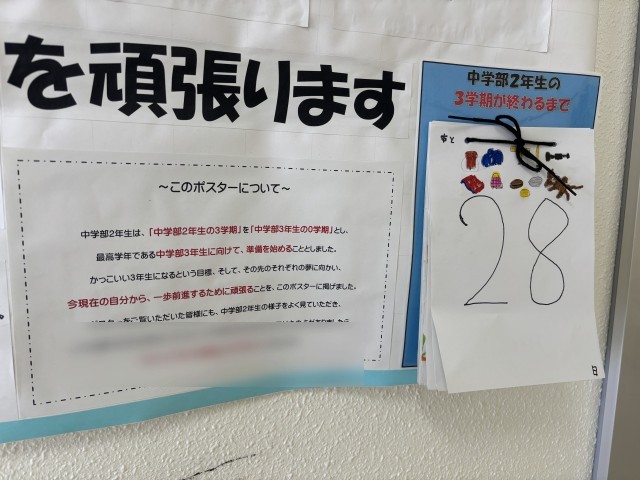 中学部2年生の教室に「中学部2年生の0学期の目標」が掲示されていました。