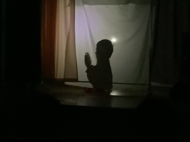 小学部の遊びの時間は、集会室で影絵を使って学習しました。
