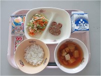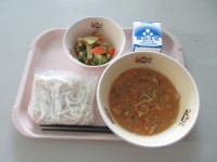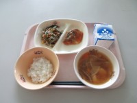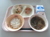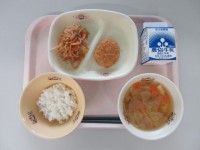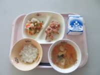 今日の給食は「ごはん きりざい 春雨と挽肉の炒め物 豚汁 牛乳」です。今日は、魚...