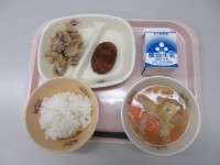 今日の給食は、「ごはん 秋刀魚の生姜焼き たくあんきんぴら 大根と白菜のみそ汁 ...