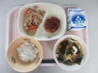 今日の給食は「ごはん 照り焼きチキン 大根のゆかり和え 豆腐のみそ汁 牛乳」です...