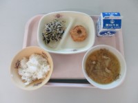 今日の給食は「ごはん、牛乳、鶏肉の西京焼き、じゃこキャベツ、夕顔けんちん汁」でした。今日は六日町小学校5年生の保護者試食会でした。保護者の方から、今日の給食の「じゃこキャベツ」がおいしかったという感想をいただきました。そこで、じゃこキャベツのレシピを紹介します。