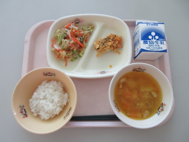 2月18日の給食 公開日 2026/03/09 更新日 2026/03/09 今日の給食 今日の給食は「ごはん メバルのコーンフレーク焼き たくあんのおかか和え 豚汁 牛乳」 でした。メバルは春をつげる魚です。 いいね(0)