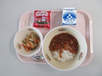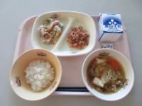 6月22日の給食は「ごはん、牛乳、チーズはんぺんフライ、じゃがいものゆかり和え、豆腐スープ」でした。