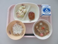 今日の給食は「ツナハヤシライス 雪んこサラダ おさつチップス 牛乳」です。今日は...