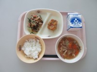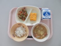 今日の給食は「ごはん たまご焼き きりざい 根菜のごまみそ煮 牛乳」です。今日は...