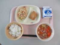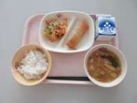 今日の給食は「ごはん 春巻き 糸うり入りサラダ 豆腐の中華煮 牛乳」です。今日は...